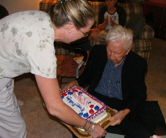 Cake and punch were enjoyed while watching a video with pictures from throughout his life.