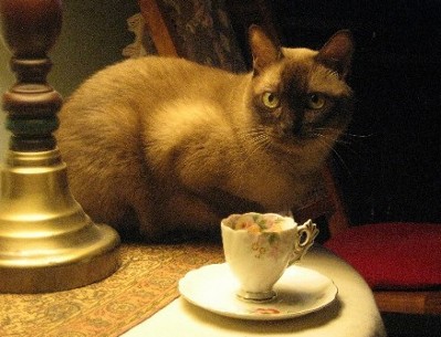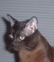 Molly has pictures of her Poppa and Momma and she would like to show them off to folks visiting her pad. Aren't they a handsome pair? They are both sable Burmese but have some champagne genes in their background and Molly had the good fortune to get one of them, as she is champagne in color. |