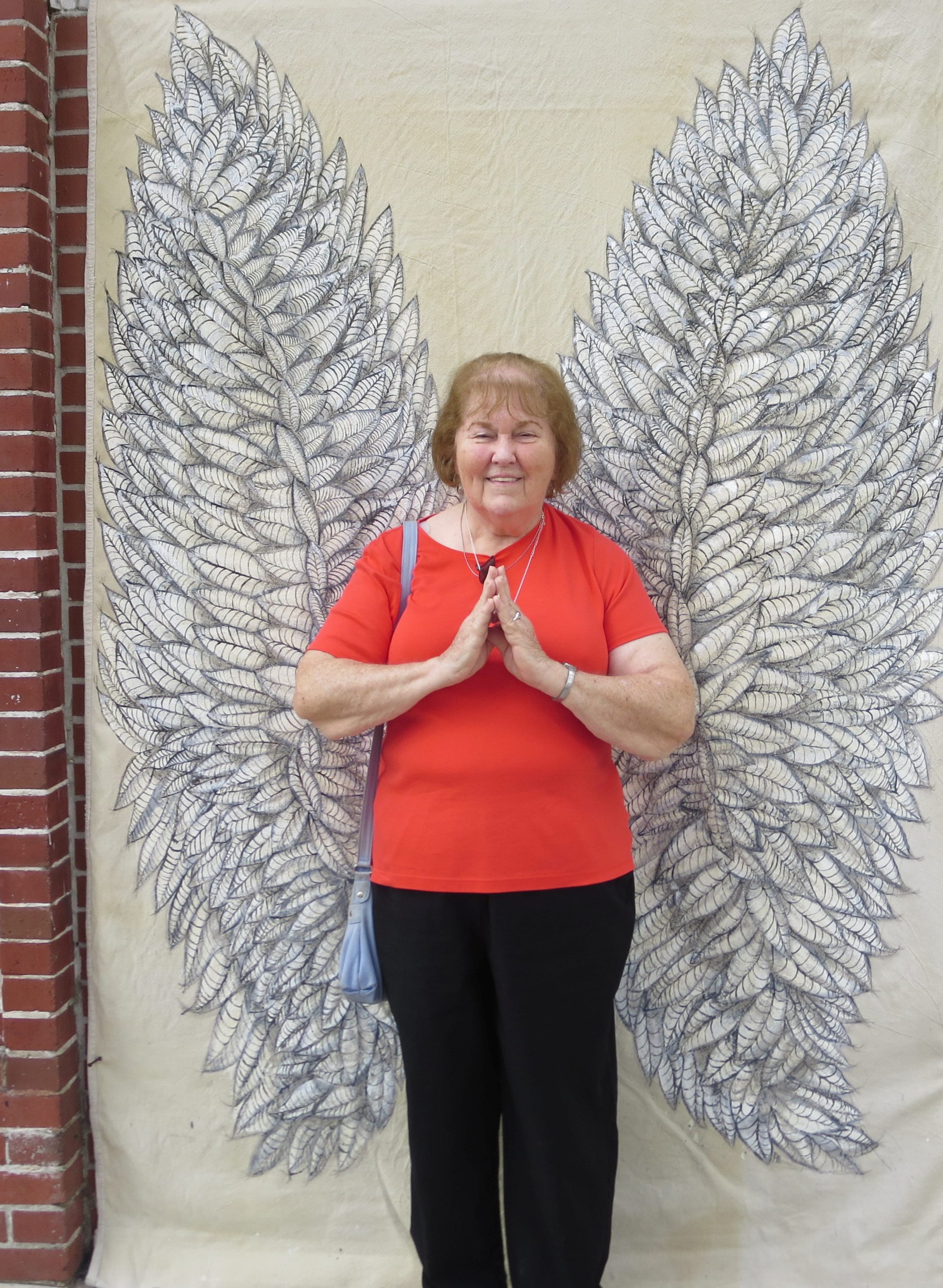 | | Another trip to Micanopy with some friends from Clearwater. This quaint town is one of the oldest communities in central Florida . We came upon a wall with angel wings painted on it and a couple of us couldn't resist the temptation. | |