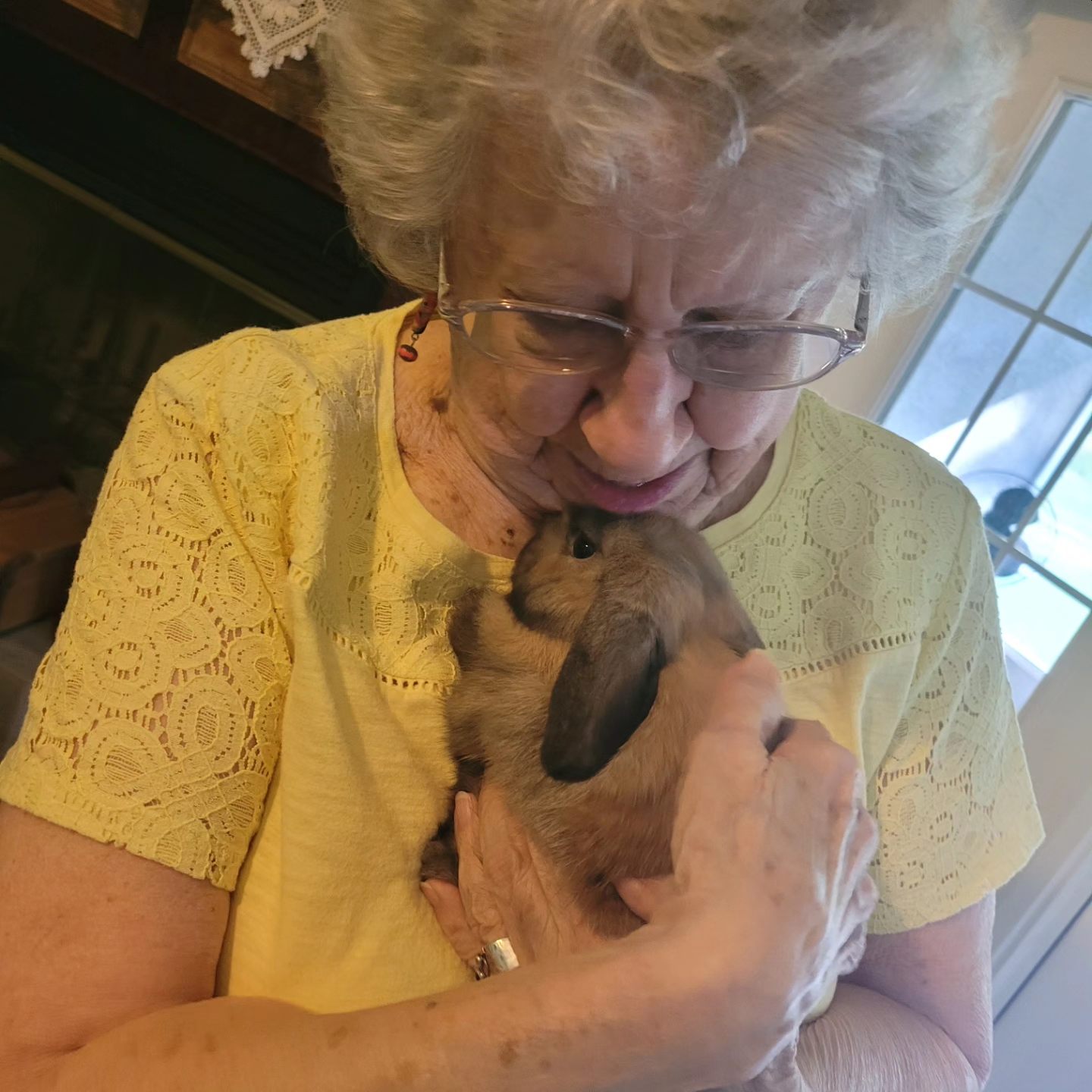 My great-grandson recently acquired a floppy-eared bunny to raise as a FFA project. He named her "Foo-Foo." When I first met her, I fell in love with her adorable little self and was tempted to kidnap her. I thought better of that, however, and just go to visit her. |
