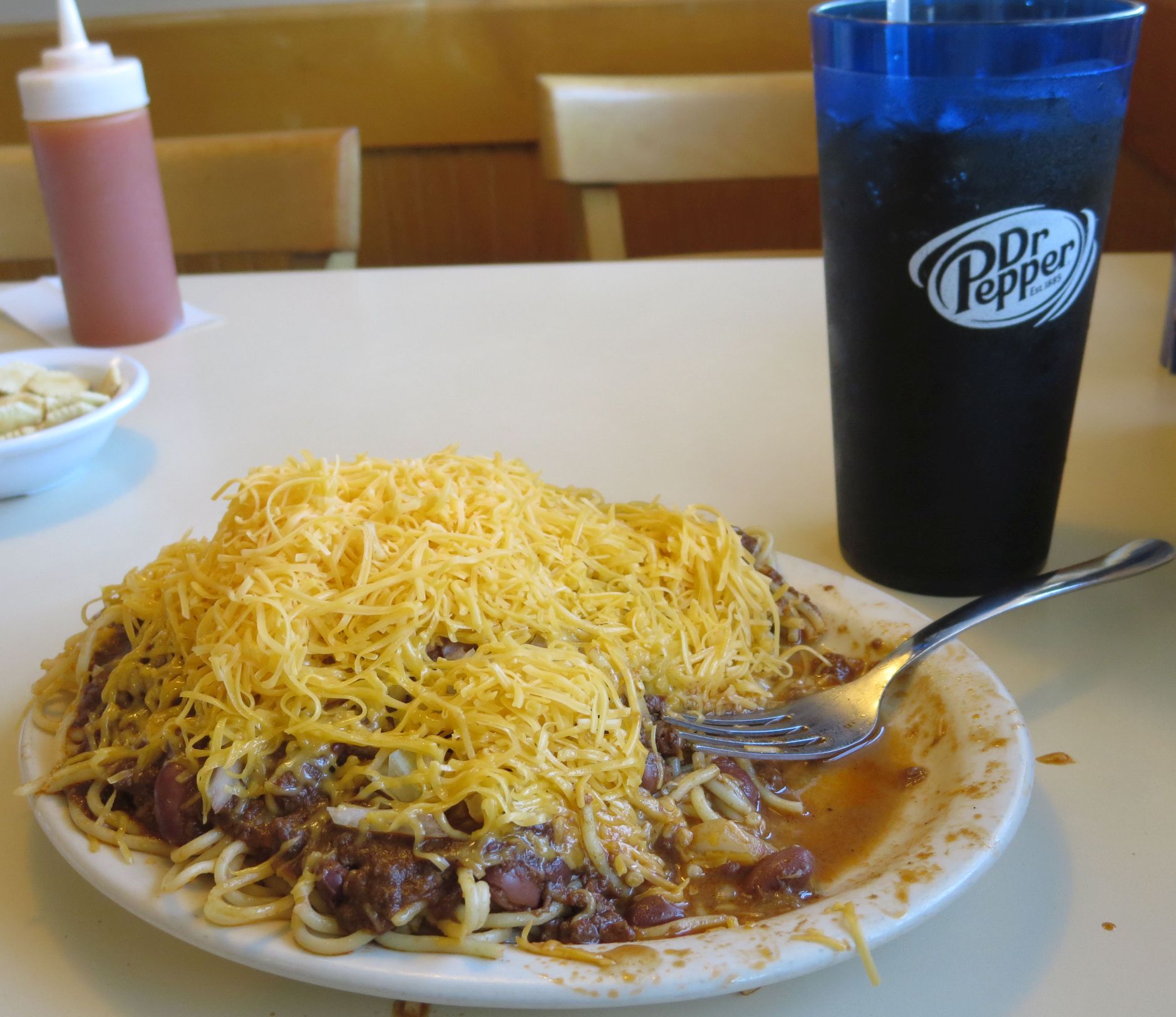 | Skyline Chile - best thing since sliced bread. I first learned of this delicious dish about 20 years ago when a co-worker returned from a visit to her hometown of Cincinnati (original home of Skyline Chili) with a box of it stashed in her suitcase (inside of a ziplock bag, hopefully). When a local establishment opened up, I tried it and have been hooked ever since. |